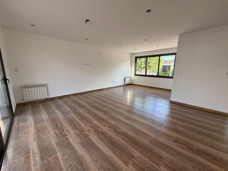 La casa cuenta con dos dormitorios y dos baños, siendo el dormitorio principal en suite con un ante baño. Los ambientes se destacan por sus excelentes terminaciones, con pisos de porcelanato, carpintería de aluminio, luminarias y cortinas roller.